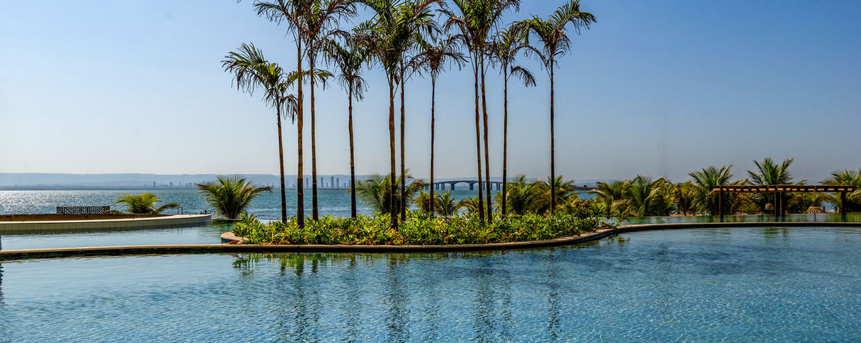 Acomodações de alto padrão, piscina com borda infinita, deck com bares molhados, academia, SPA, restaurantes com experiências gastronômicas únicas, espaço kids e lazer completo.